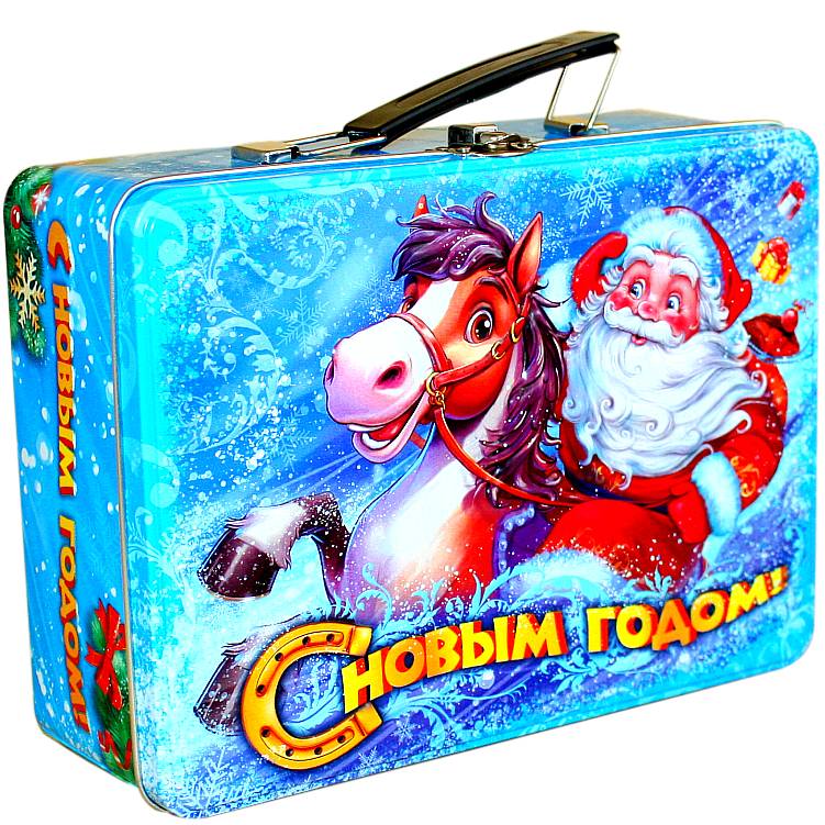 Сладкий новогодний подарок в жестяной упаковке весом 480 грамм