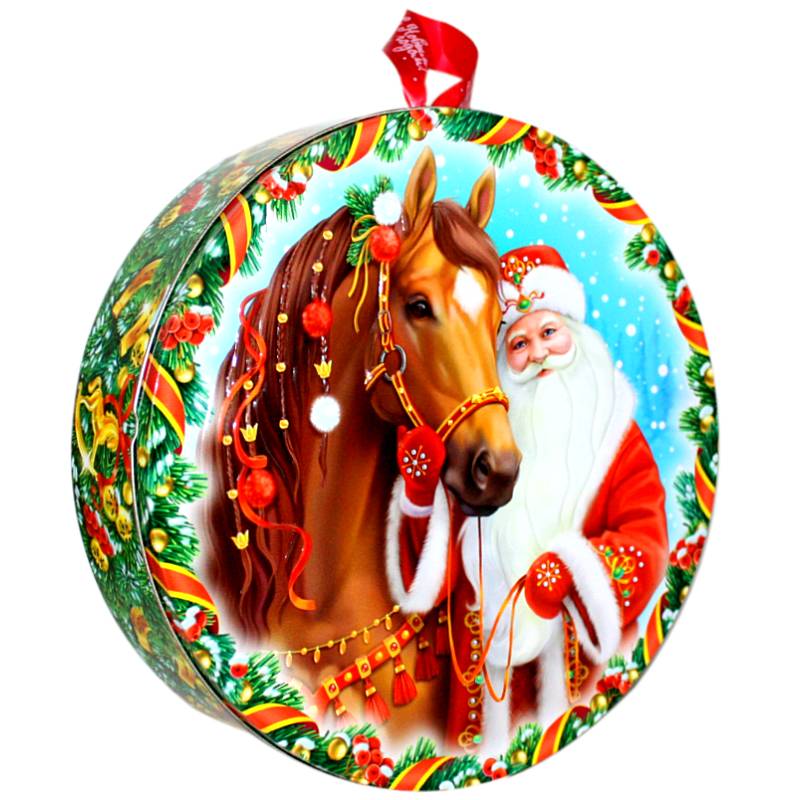 Детский новогодний подарок в жестяной упаковке весом 1000 грамм