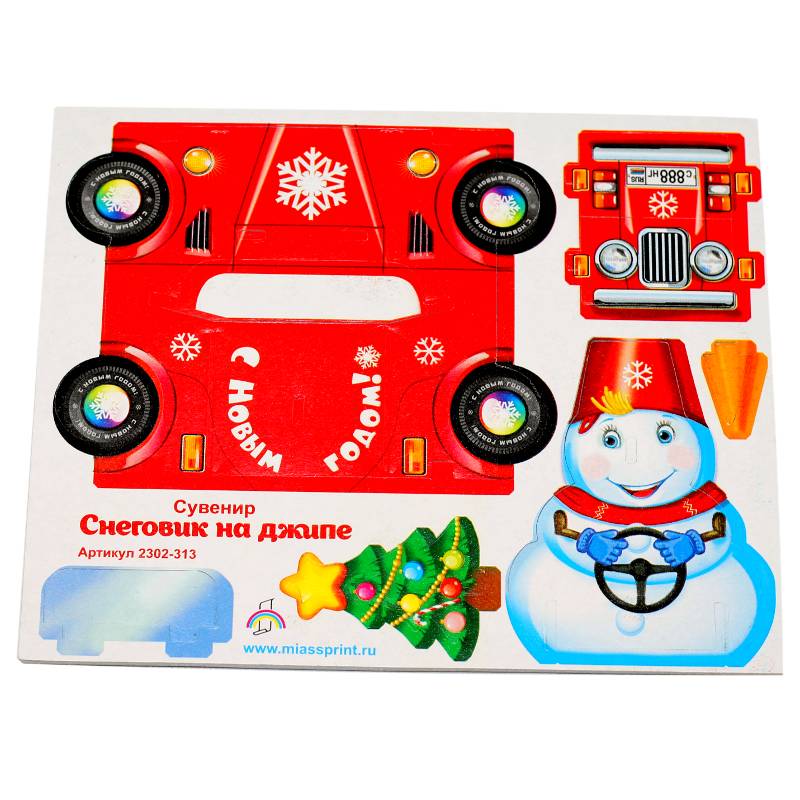 Объемный пазл Снеговик на джипе