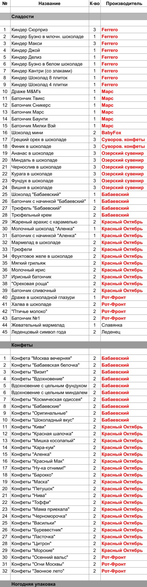 1. Проверить, можно ли внести изменения в состав подарка. Если нет, то скорее всего наборы были собраны еще летом из конфет, произведенных еще раньше