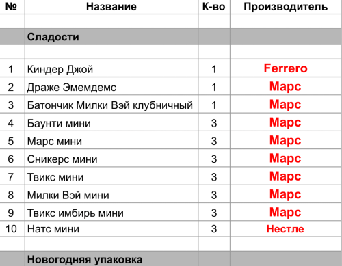 1. Проверить, можно ли внести изменения в состав подарка. Если нет, то скорее всего наборы были собраны еще летом из конфет, произведенных еще раньше